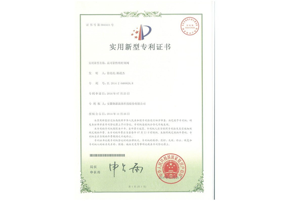 您當前的位置: 首頁 > 走進我們 > 榮譽資質 > 專利證書