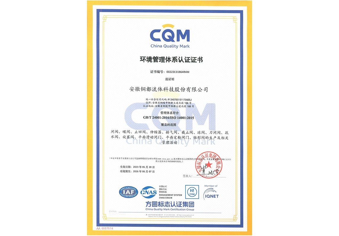 ISO14001環(huán)境管理體系認(rèn)證證書(shū)