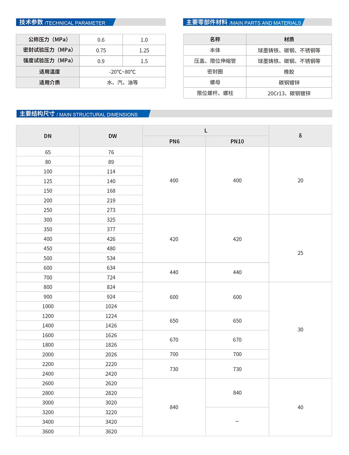 松套傳力接頭是由松套伸縮接頭和短管法蘭、傳力螺桿等構(gòu)件組成。