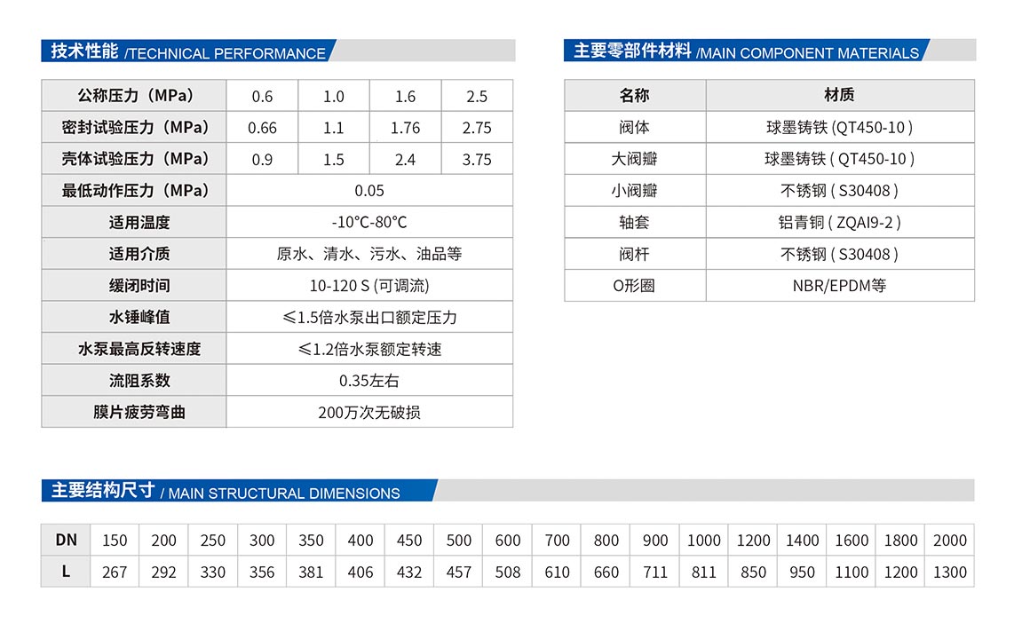 5、 安全可靠性高。具有速閉、緩閉以及吸能腔三種消除水錘措施,而且動(dòng)作完全聯(lián)鎖,不會(huì)產(chǎn)生誤動(dòng)作。